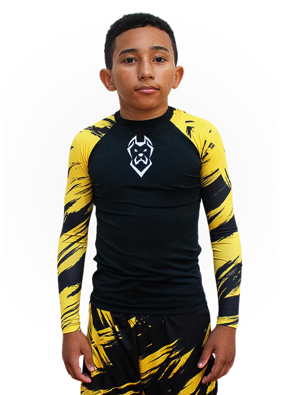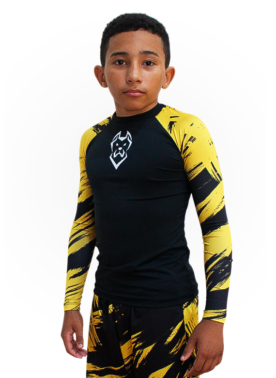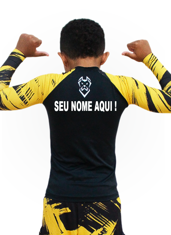 Rash Guard manga longa estampa amarela Canecorso com seu Nome